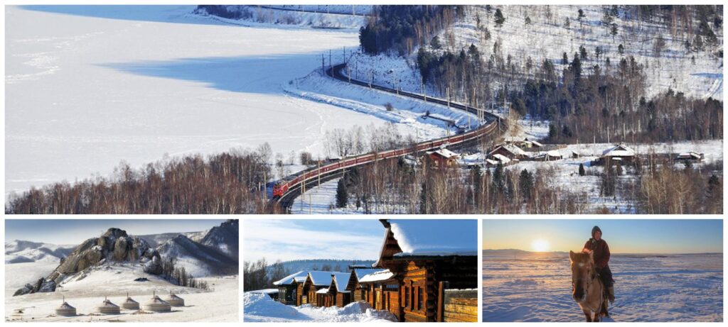 Maak een winterreis per Transsiberië en Transmongolië Express. Reis door de wit besneeuwde taiga, langs bevroren meren en rivieren. Tijdens een winterreis heeft u een prachtig uitzicht vanuit de trein, door de bladloze bomen in de Siberische winter zijn de uitzichten nóg weidser. Geniet daarnaast ook van de Banja (een Russische sauna) en maak een tocht met een hovercraft of een hondenslee over het bevroren Baikalmeer. De treinreis in de winter past erg goed bij zowel Siberië als Mongolië. In de trein zult u het niet snel koud krijgen, de Transsiberië Express wordt namelijk goed verwarmd. Daarnaast zijn de treinen in Siberië en Mongolië goed uitgerust voor sneeuw en vrieskou. Weer of geen weer, vertraging hebben de treinen vrijwel nooit.